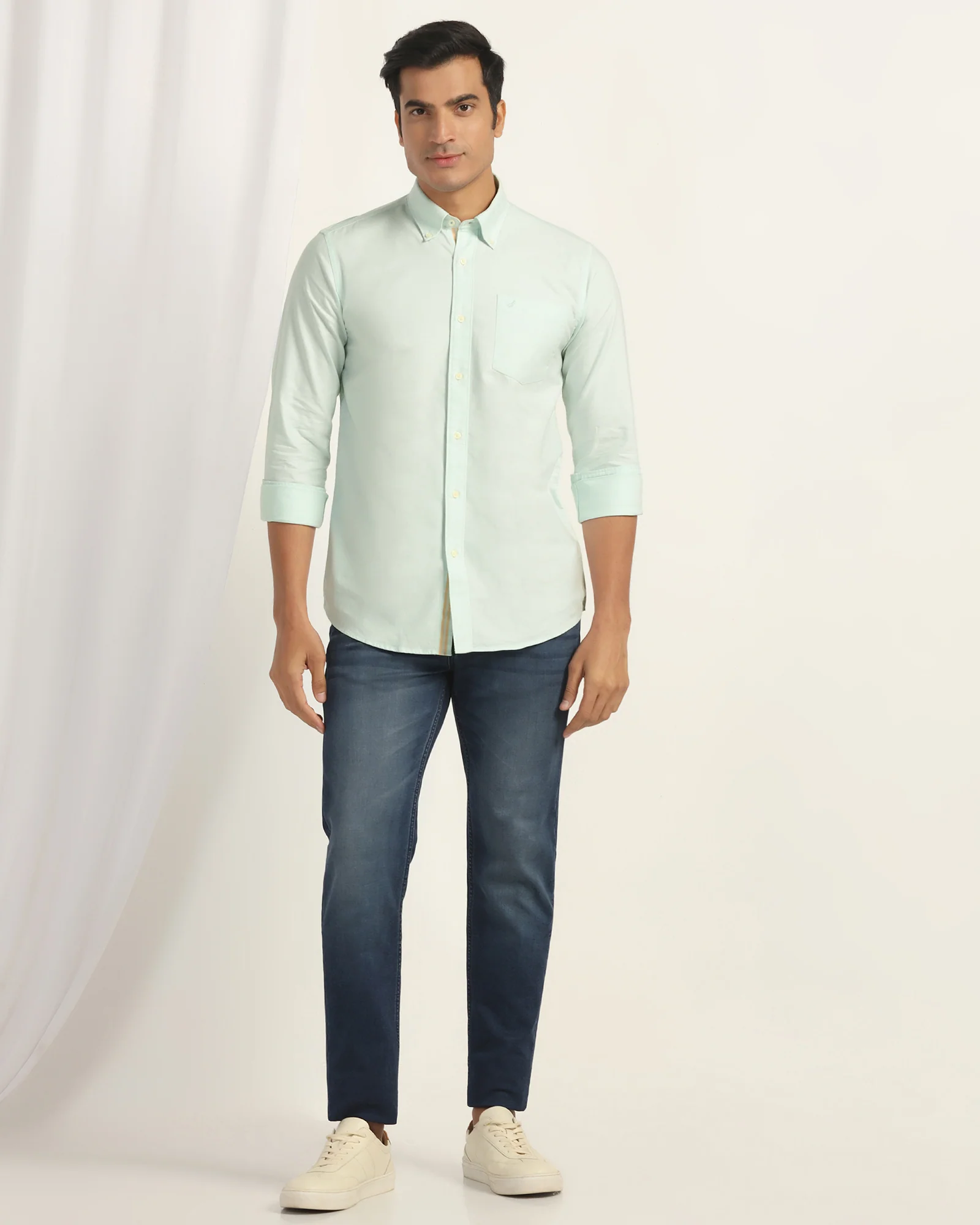 Update your wardrobe with the Solid Casual Shirt for a chic and sophisticated look. Crafted from high-quality Oxford fabric, this slim fit shirt has a semi cut-away collar and a chest pocket for style and functionality. Full sleeves add to its functionality, making it perfect for any occasion.
